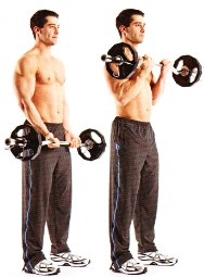 A bicep curl performed correctly - many people lean back and lift the elbows which is counter-productive and can be dangerous